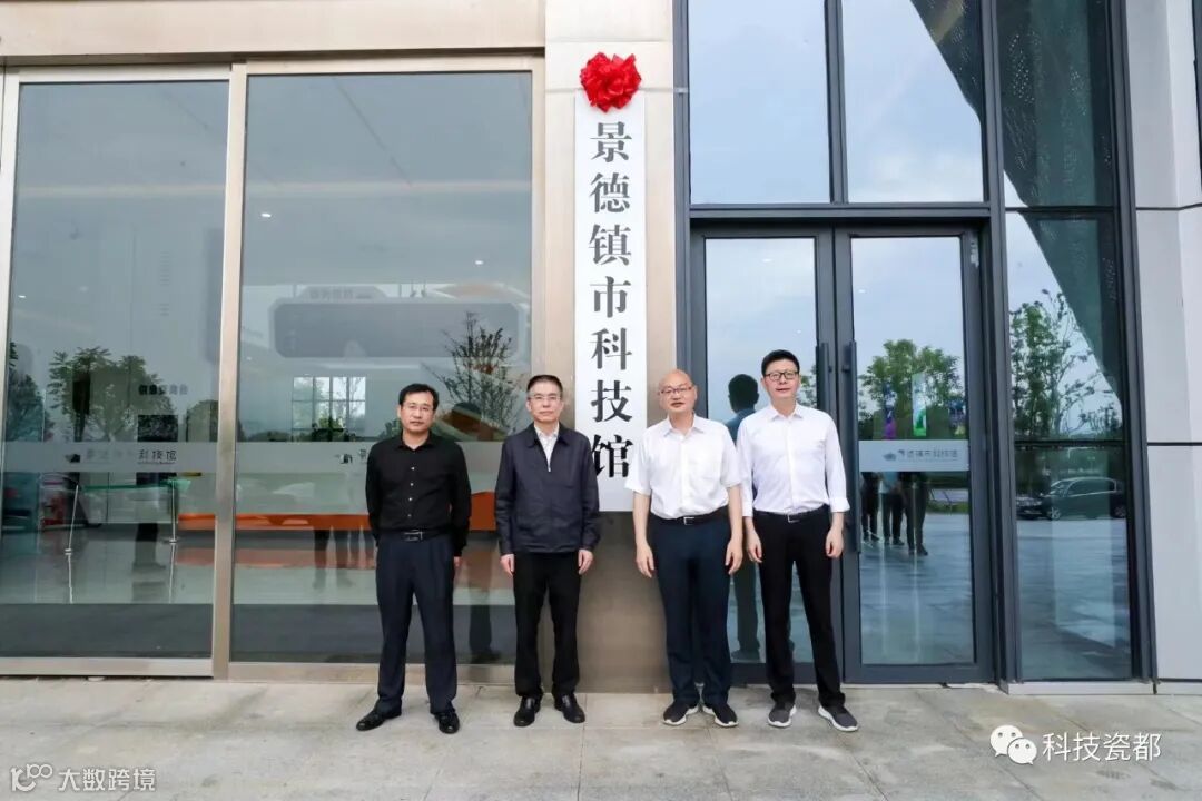 吴隽、梁纯平、罗文军、黄华勇共同为景德镇市科技馆揭牌