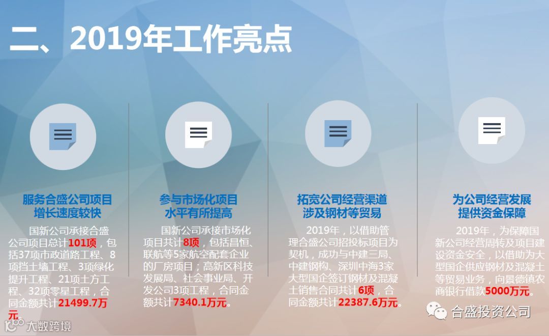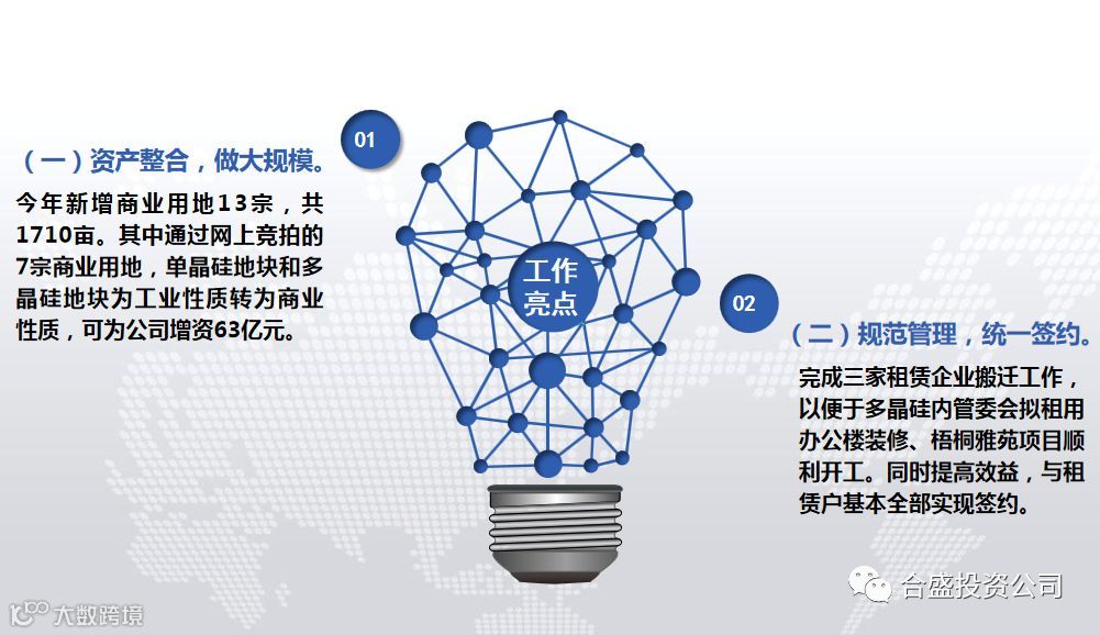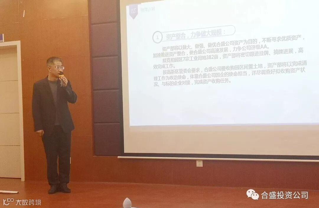 资产部部长吴昌华介绍了这一年部门在资产整合、扩大规模,规范管理、统一签约,资产运营、提高效益的主要工作、和获得的成果;在下一步工作中要以做大、做强、做优合盛公司资产为导向,加快资产整合及运营,保障国有资产增值保值。
