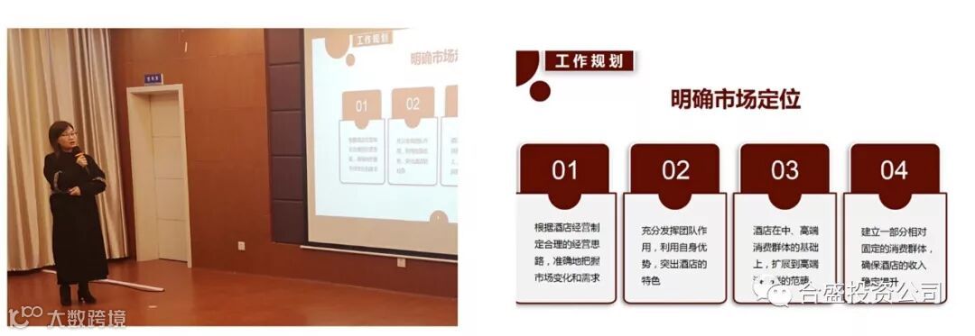盛雅酒店负责人吴萍介绍了盛雅酒店这一年在营业收入、内部管理、完善服务的主要工作和获得成果;并提出要明确市场规划、提高销售收入、加强员工培训及安全管理,强化酒店管理,2020年取得更好的成绩。