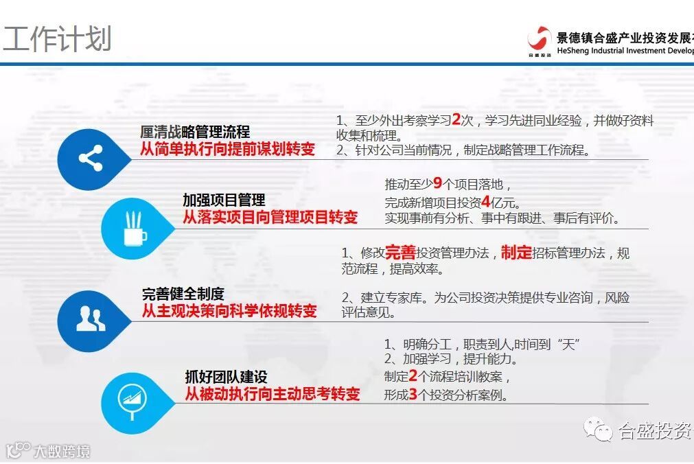 投资管理部副部长吴泽弘从“投资管理、资金申报、内业管理”三个方面回顾了投资部这一年度的主要工作,总结了不足,并希望能一直为合盛公司在厘清战略管理流程、加强项目管理、完善健全制度、抓好队伍建设上保驾护航。