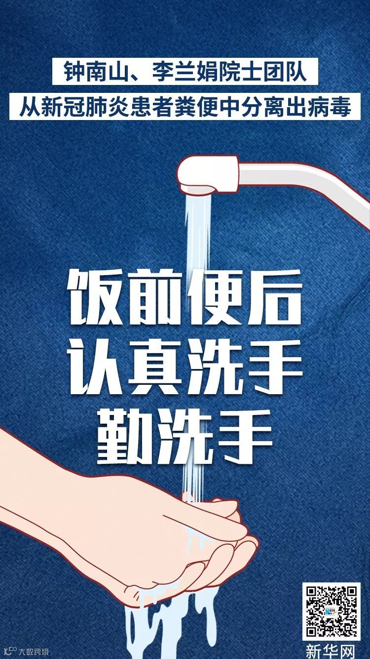 “提醒大家要更加重视个人和家庭的清洁,如便后洗手,注意下水道的通畅,以避免有可能出现的粪便病毒的传播。患者粪便中病毒的分离为我国新冠肺炎疫情的防控策略的制定提供了重要信息,对公共卫生安全具有重要意义。”赵金存说。