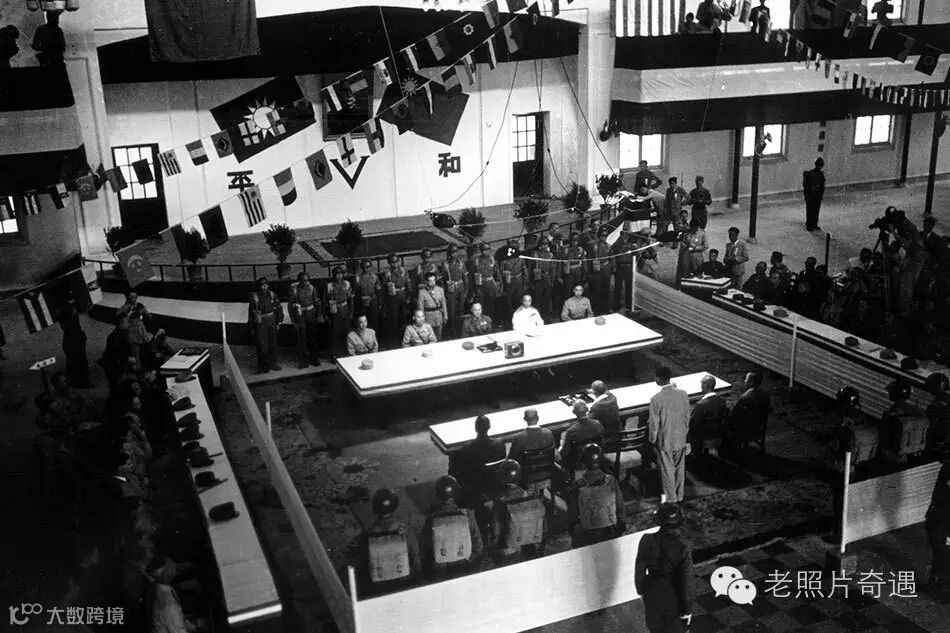 1945年9月9日上午9时,南京中国陆军军官学校大礼堂,中国战区受降仪式在此举行。这个时间,中国人视为“三九良辰”。双方代表各7人。日本投降代表都被要求剃光头,以示战败输光。
