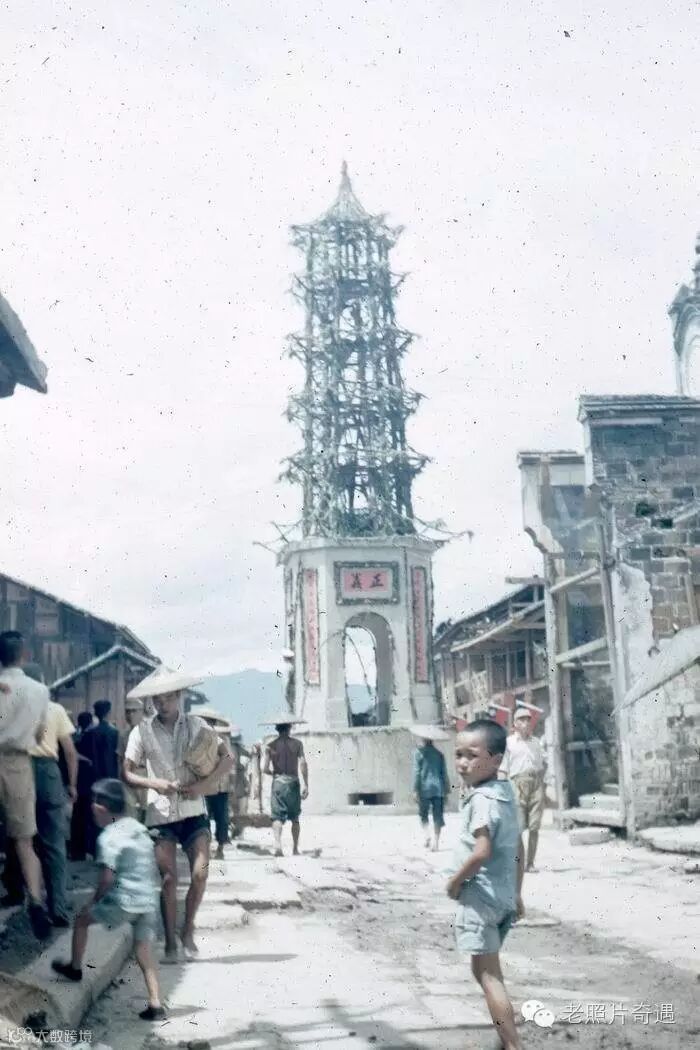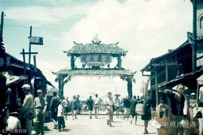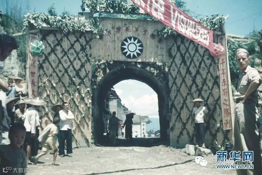 1945年8月的芷江城街头,门楼上写着“正义大道”。