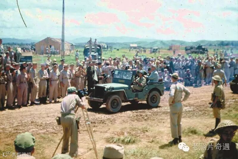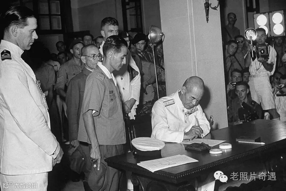 盟军总司令麦克阿瑟将军发布一号受降令规定“凡在中华民国(满洲除外)、台湾、越南北纬16度以北之日本军队,均应向中国军队投降”。香港位于北纬16度以北,但英国强硬坚持不放弃香港殖民地,蒋介石无奈只得接受英国人在香港受降的现实。图为1945年9月15日,英国人在香港受降。