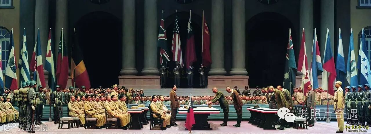 南京受降仪式的油画是上面这样的,何应钦可是站得笔直啊。作品名称:《公元一千九百四十五年九月九日九时·南京》 作者:南京军区政治部文艺创作室原副主任 陈坚