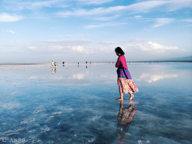 中国的天空之镜,非常美,脱了鞋下去洗了洗脚,在水中感觉很不一样,非常美。体会天水相接,白云倒影。