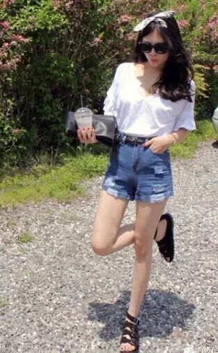 腿短腿长的姑娘都不得不选择的高腰牛仔短裤真是夏日必备法宝。