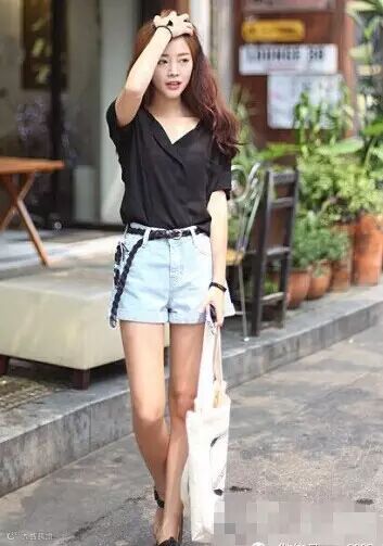 推荐理由:绝对的女神基本款,雪纺衬衣配高腰牛仔短裤气场瞬间up!
