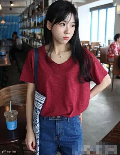 搭配TIPS:蓝牛+暗红宽松T+褐色单鞋+香槟色包包