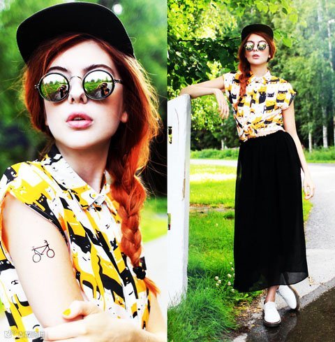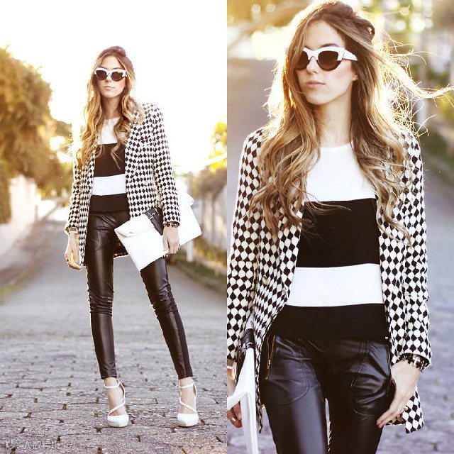 2、条纹或者花纹的上衣需配素色的裤子。