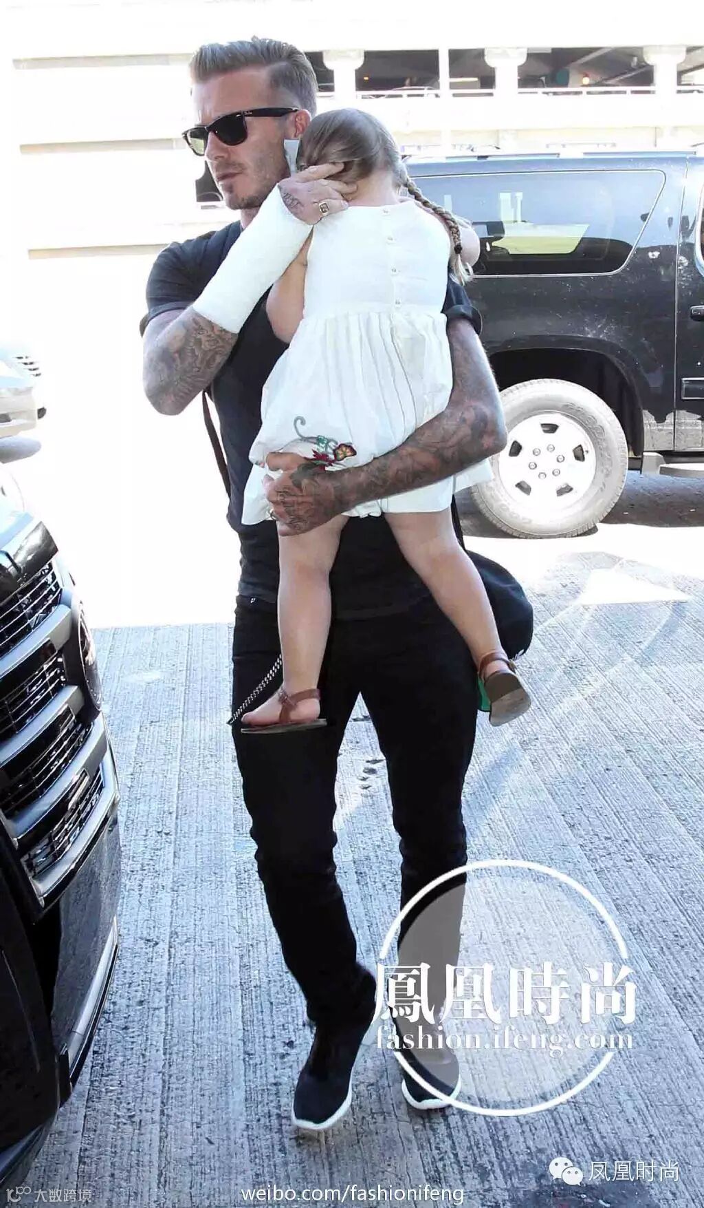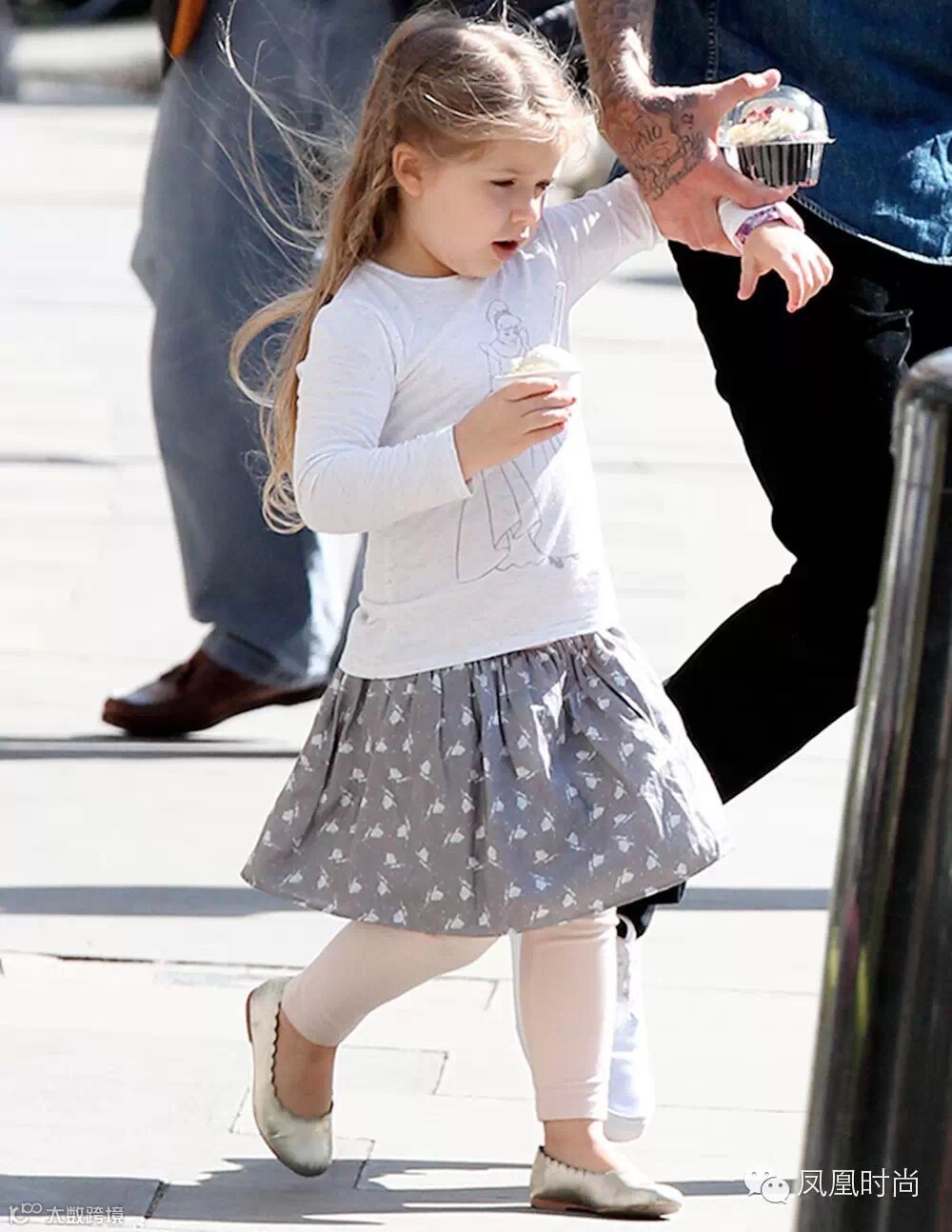 伦敦当地时间5月12日,“万人迷”贝克汉姆带着女儿七公主出街~七七当天穿着Courage & Kind白色上衣和Chloe芭蕾舞平底鞋~小妞儿的麻花辫新发型大家还喜欢吗?