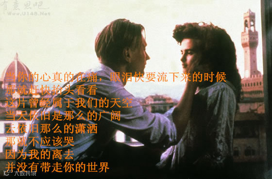22.《看得见风景的房间》:当你的心真的在痛,眼泪快要流下来的时候,那就赶快抬头看看,这片曾经属于我们的天空;当天依旧是那么的广阔,云依旧那么的潇洒,那就不应该哭,因为我的离去,并没有带走你的世界。