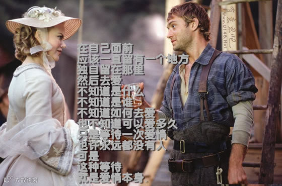 15.《冷山》:在自己面前,应该一直留有一个地方,独自留在那里,然后去爱。不知道是什么,不知道是谁,不知道如何去爱,也不知道可以爱多久。只是等待一次爱情,也许永远都没有人。可是,这种等待,就是爱情本身。