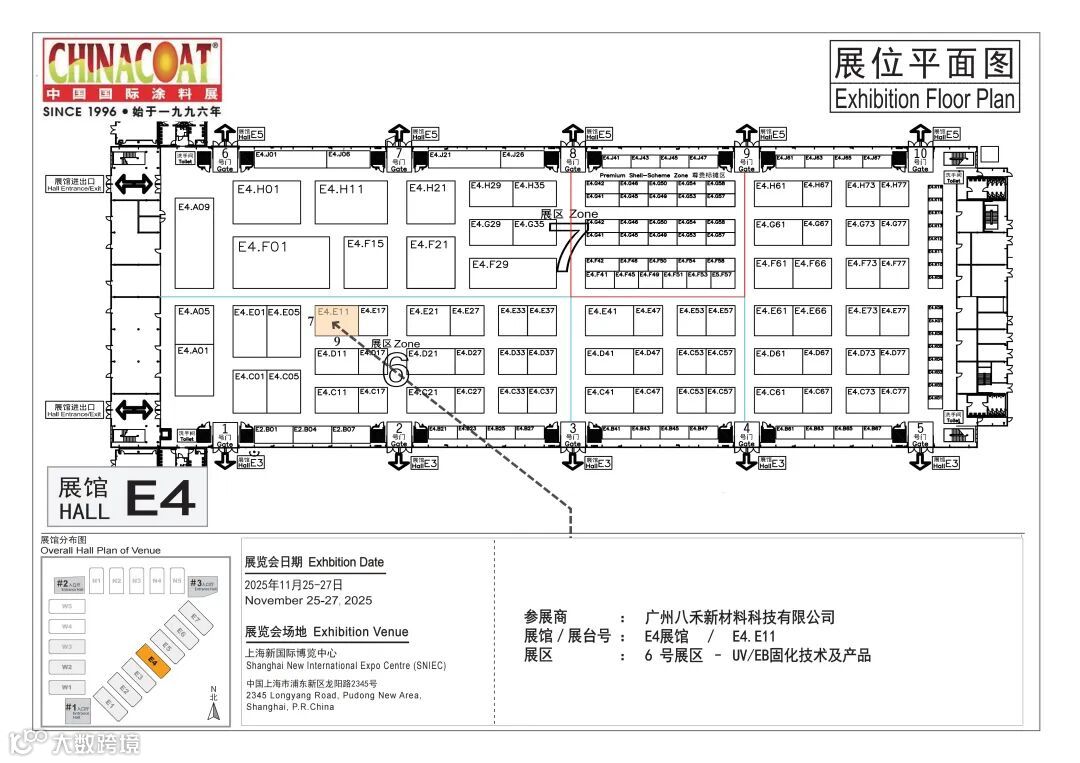 上海涂料展的精彩仍在继续,八禾E4 展馆 6 展区 E4.E11展位的丰富产品与专业团队已做好准备。无论您是有采购需求的企业客户,还是对涂料技术感兴趣的行业伙伴,这里都有适合您的惊喜。我们在 E4.E11 展位,期待与您面对面交流,共赏好物,共话机遇!