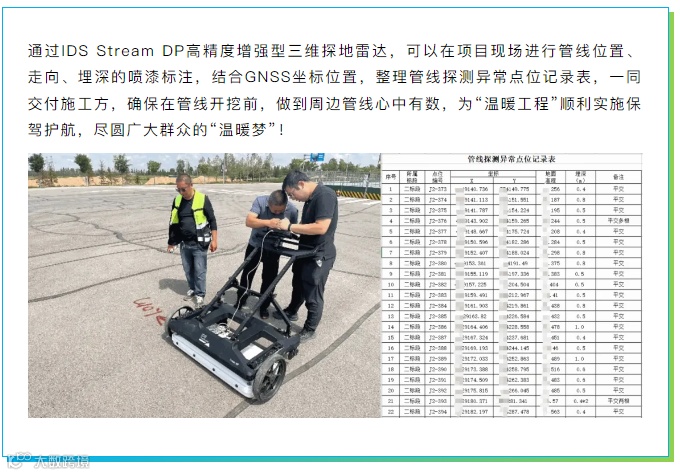 但是在项目实施过程中,已有管网资料的缺失,老旧小区内老旧供热管线的布设位置不清晰,对于新供热管网的开挖和铺设造成了不小的挑战。如果开挖过程中造成水管的破损,会导致区域生活用水出现问题;如果开挖过程中造成燃气管线和国家光缆出现断裂,造成的损失不可估量。