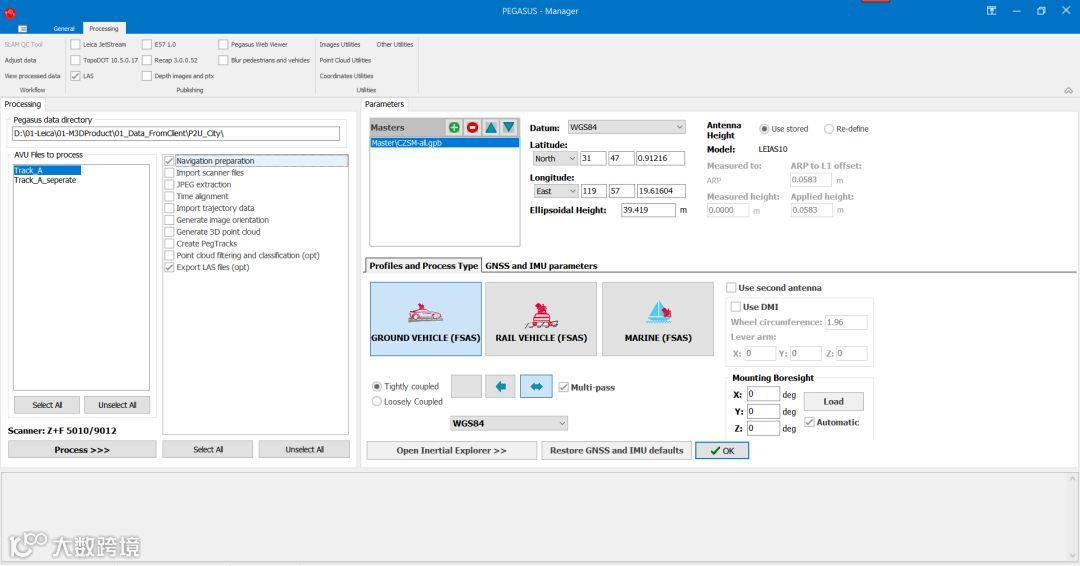 徕卡P2U和Backpack的内业数据处理软件仅需要一个Pegasus Manager即可,该软件支持两种采集平台的数据预处理,包括点云和影像的生产,还支持将两种不同平台的数据放在一起进行点云纠正,提高数据的精度等高级功能。