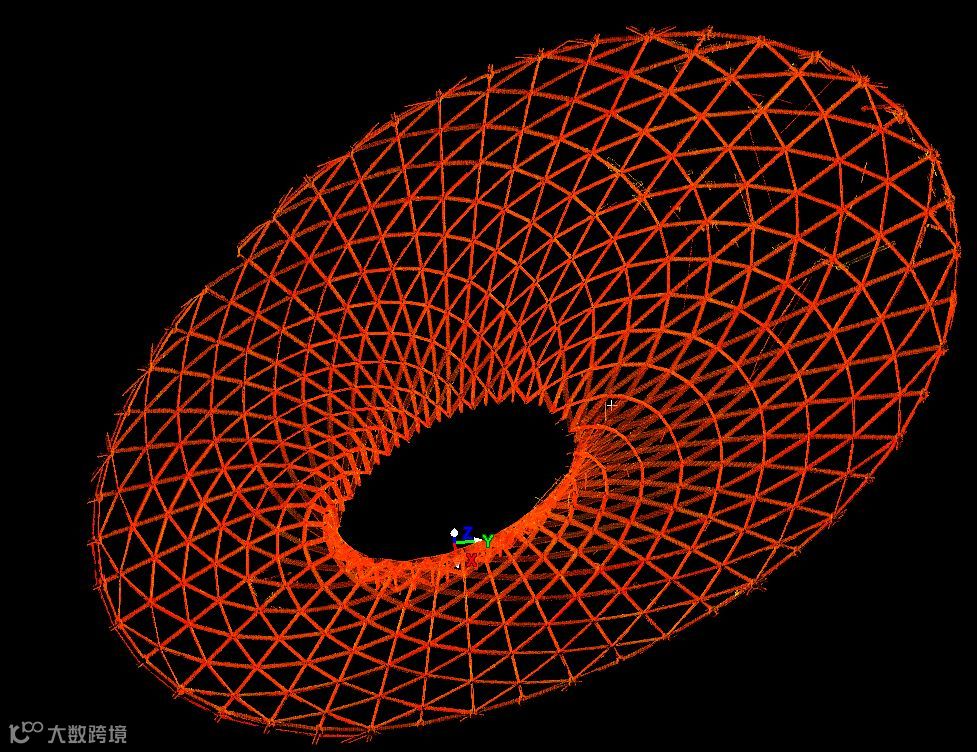 2、重构当前竣工钢结构三维模型,模型精度3mm,重构模型可以导入到犀牛软件中进行参照。