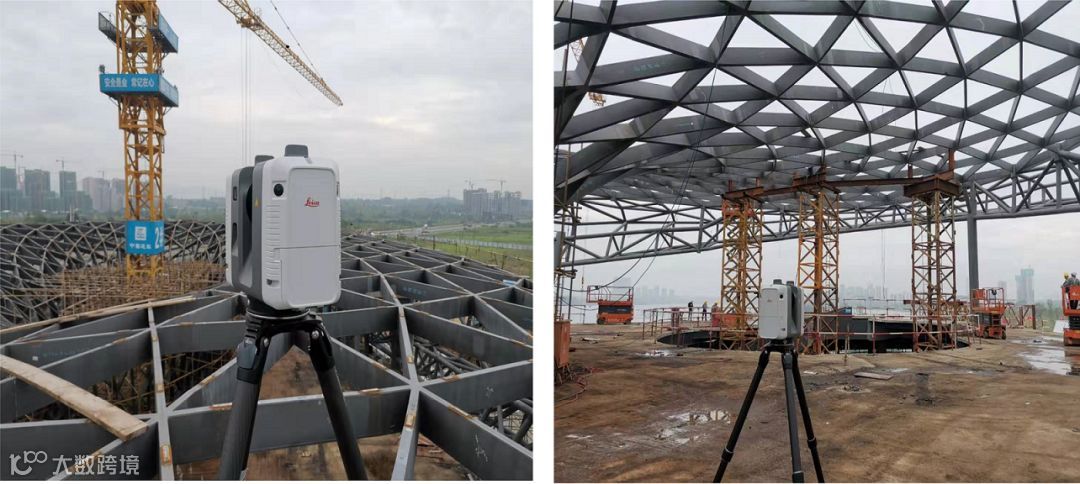 徕卡RTC360便携易用,设备重量仅5.3kg,搬站轻松,放稳即可扫描;本次作业就轻松携带设备到塔吊上面进行了扫描。