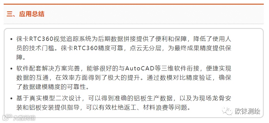 导读:徕卡RTC360视觉追踪系统为后期数据拼接提供了便利和保障,降低了使用人员的技术门槛。徕卡RTC360精度可靠,点云无分层,为最终成果精度提供保障。
