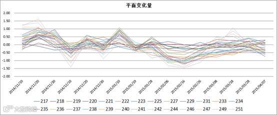 以20141110—20150407的数据分析,(部分)桥墩平面变化量如图6所示: