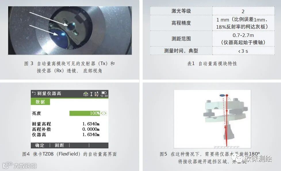在过去,考虑到全站仪内部空间以及测距模块的尺寸限制,实现自动量高技术非常困难,如图2。