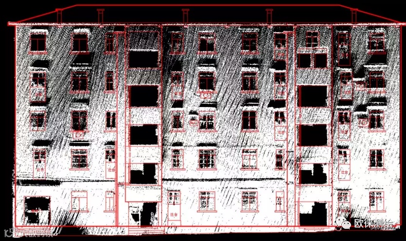 1)将徕卡移动背包的点云通过Cloudworx导入到AutoCAD中,在点云上进行立面图绘制