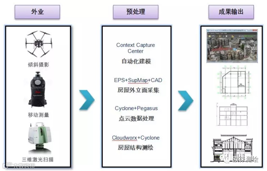 1. 倾斜摄影测量能在空中获取建筑物可见范围内的数据,弥补地面测量的短板。