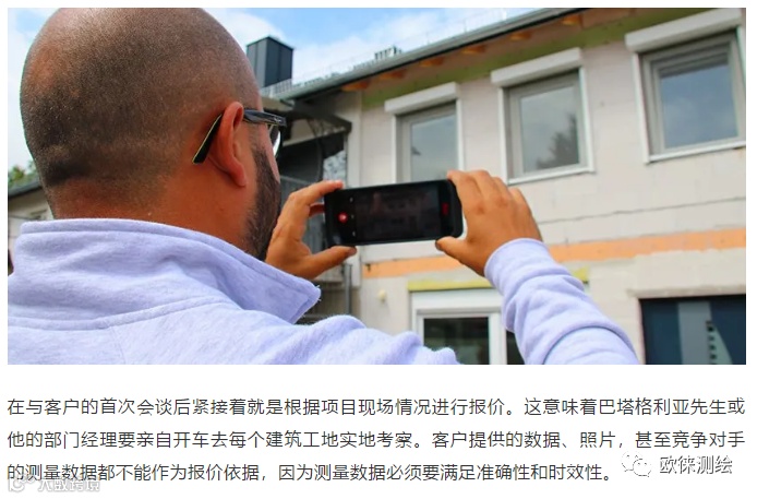 Kolb是一家德国的脚手架安装公司,他们的主要业务是对施工现场的脚手架安装进行报价和施工,巴塔格利亚先生于2010年接管了这家传统的脚手架安装公司,并在近年来采用徕卡BLK3D的测量成果作为订单报价的依据和工人安装的辅助,替代了传统方式下由卷尺和激光测距仪进行的大量测量工作。凭借徕卡BLK3D带来的高效性和准确性,在订单激增的同时,巴塔格利亚先生也成为了德国当地脚手架公司协会的区域代表。