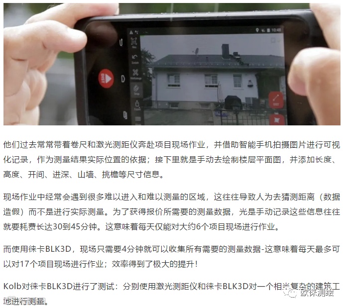 “在建筑业,你需要容易理解和使用的技术。只需要很少的工具和附件就能完成所有工作,这就是徕卡BLK3D的魅力所在。“