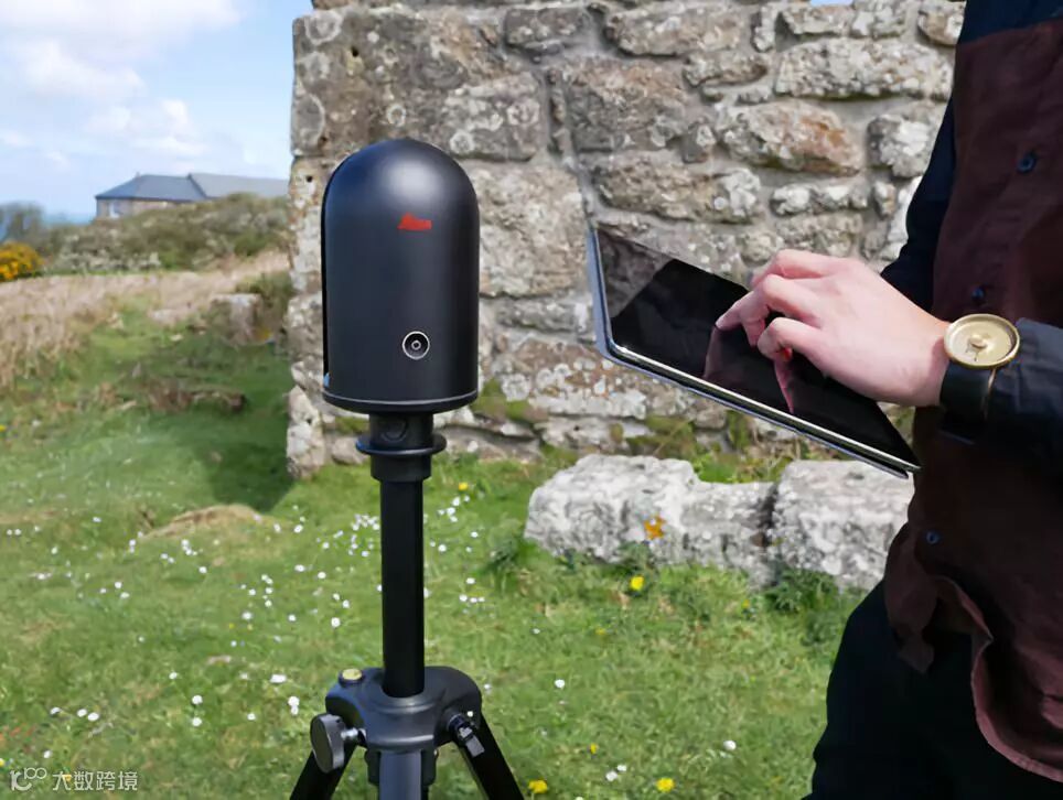 徕卡BLK360有3个500万像素的摄像头,并且自带3个LED闪光灯,嵌在扫描仪圆顶的后部。它可以生成一个水平360度垂直300度的全景图,并且可以将全景图映射到相应的点云中,并存在32GB的设备内存中。