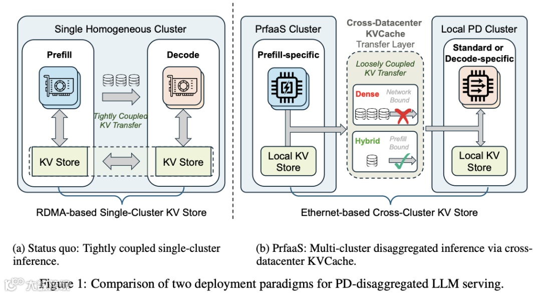 月之暗面与清华大学联合发布论文,提出Prefill-as-a-Service(PrfaaS)架构,首次实现大模型KVCache跨数据中心传输,将Prefill与Decode解耦部署至异构集群。