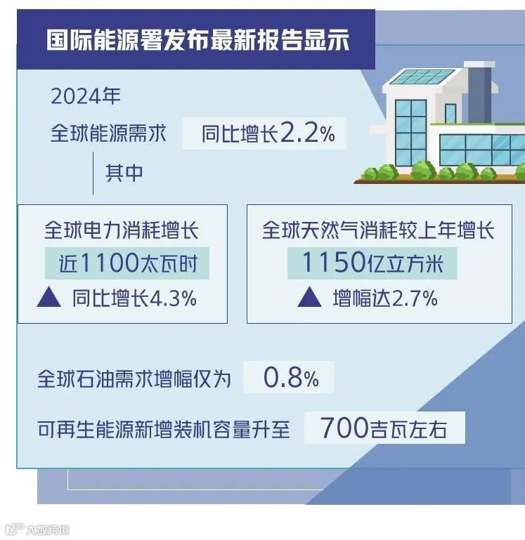 报告显示,2024年全球能源需求同比增长2.2%,增速超过2013年至2023年间1.3%的年平均增长水平。在能源需求增量中,新兴市场国家和发展中经济体的需求增量仍占80%。发达经济体的能源需求在经历连续数年萎缩后呈现复苏态势,实现了近1%的正增长。