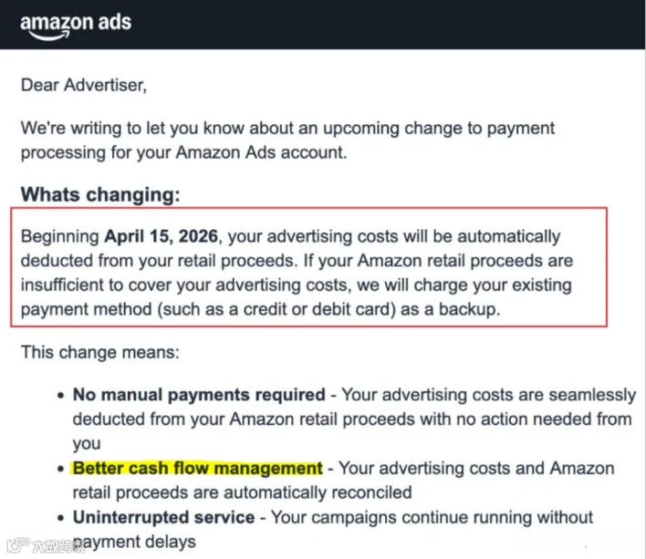 亚马逊广告支付调整新规