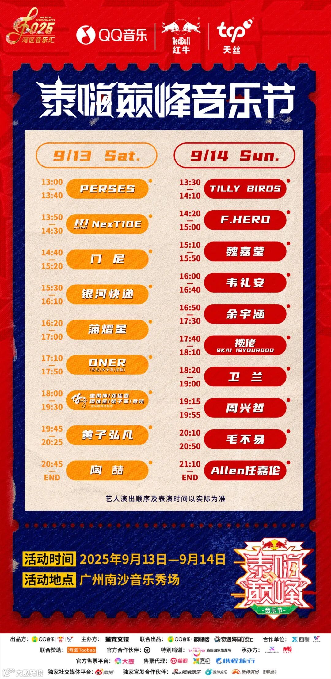 9月14日阵容:Allen任嘉伦、毛不易、周兴哲、卫兰、揽佬SKAI ISYOURGOD、余宇涵、韦礼安、魏嘉莹、F.HERO、TILLY BIRDS