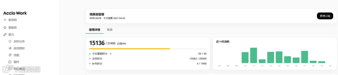 Accio Work已接入国际站生意助手,利用i豆实现部分功能,有效降低积分消耗。