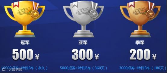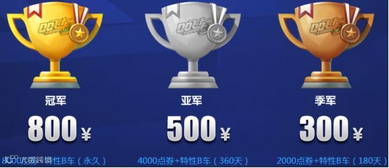 ⑤赛车:城市海选赛的选手必须使用板车参赛。线下赛与全国总决赛的可选车池:蓝影主宰,荣耀之光,狱火啸天,天启。其中在全国总决赛上,每队3名选手