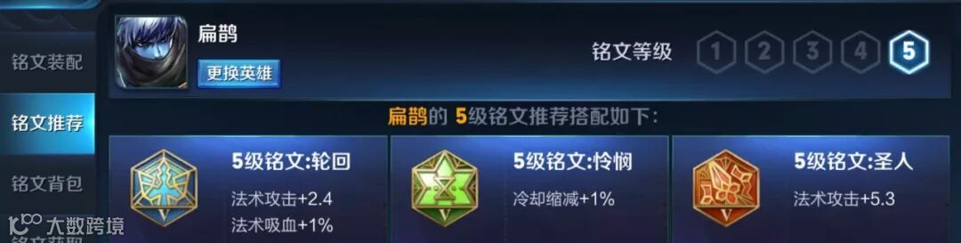 对扁鹊来说,法术攻击和冷却缩减是很重要的,冷却效果可以通过装备补充,选择标准的法术攻击铭文可以让扁鹊轻松普攻叠加被动到5层,达到最大收益,吸血效果可以帮助扁鹊的伤害达到最大化。