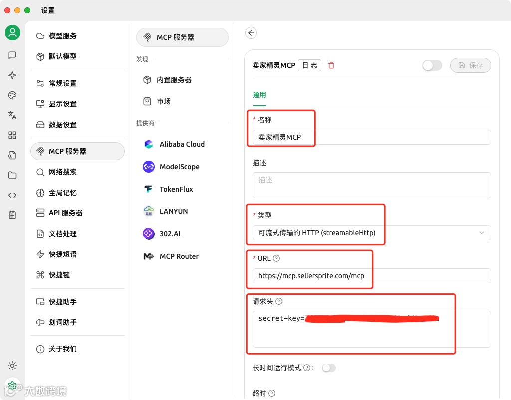 三、在Cherry Studio中配置卖家精灵MCP连接