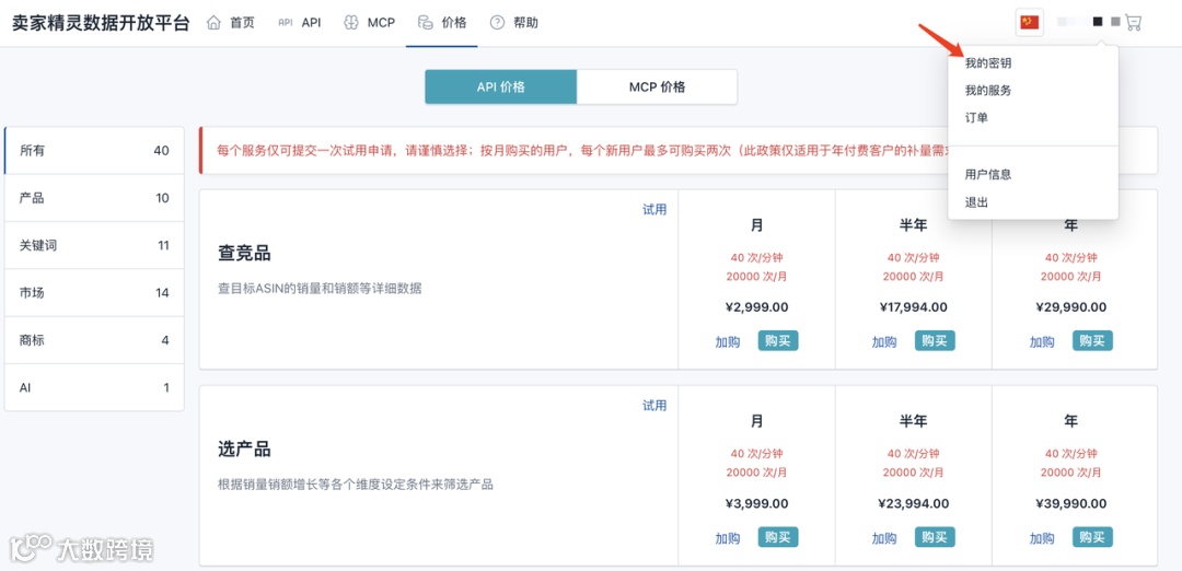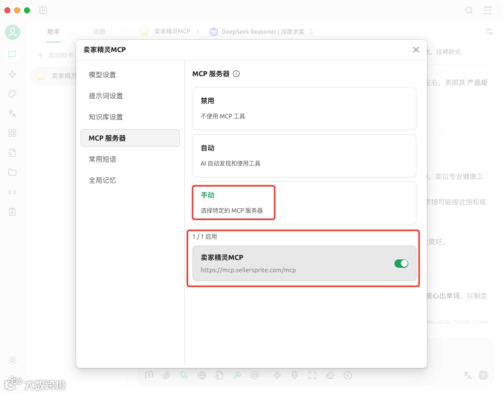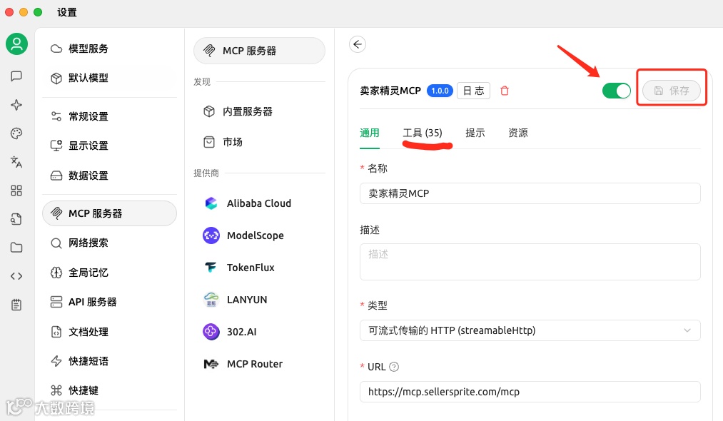4. 在【MCP服务器】启用卖家精灵MCP服务