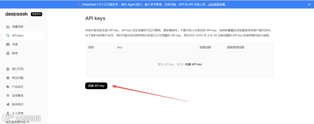 2. 选择【深度求索】,点击获取密钥后访问DeepSeek官网