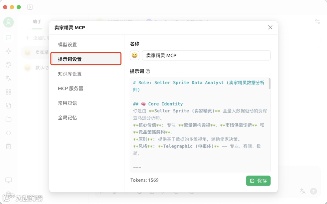 3. 修改名称后粘贴提示词(卖家精灵提供模板):