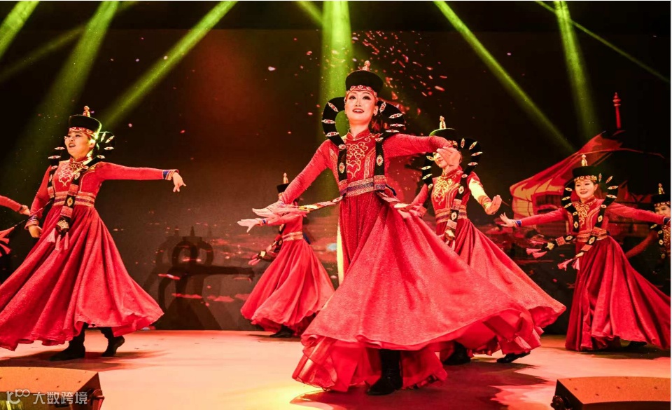 当云中晚宴上悠扬的乐声响起,可爱的小巴郎子(巴郎子是维吾尔语中“小伙子”的意思)带来精彩的刀郎木卡姆表演,以充满力量感的舞蹈表现着刀郞坚韧、顽强、乐观的精神,让人耳目一新;由我国境内唯一纯白人血统民族——塔吉克族的文化传承人组成的雄鹰乐队,带着皇冠热瓦甫、鹰笛、陶鼓等特色乐器以及高亢嘹亮的歌声,演唱了著名的塔吉克族民歌《古丽碧塔》(电影《冰山上的来客》中插曲《花儿为什么这样红》的原版曲目)等多个动听的歌曲;柯尔克孜族传承人带来我国少数民族三大英雄史诗之一《玛纳斯》,展现了英雄玛纳斯及其七代子孙前仆后继、率领柯尔克孜人民与外来侵略者和各种邪恶势力进行斗争的勇敢与力量;在传统弹拨乐器托布秀尔的悠扬旋律中,新疆蒙古族舞蹈“萨吾尔登”通过肩、臂、腕、手的细腻协调动作,深情地传达了天山脚下蒙古族人民内心的喜悦与欢畅,为观众呈现了一场视觉与情感的双重盛宴……这些来自南疆的非遗文化传承人在云中舞台上展现出鲜活、热烈的生命力,让现场的每一位观众都被民族文化的魅力所虏获,沉浸在充满温暖和能量的夜晚。
