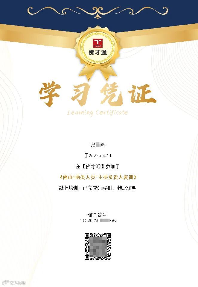 备注:【2025年年安全复工复产第一课】,微信搜索小程序“佛才通”,点左下方首页。点击上方“2025年安全复工复产第一课” 。点击“手机号快捷登录”,确认。点击“认证信息”,按提示填写个人基本信息,提交。返回后,点击2025复工复产第一课“学习”。共有二个视频,分别为:2025年春节节后安全复工复产第一课(上)、2025年春节节后安全复工复产第一课(下),需看完2个视频后才可以取得凭证。