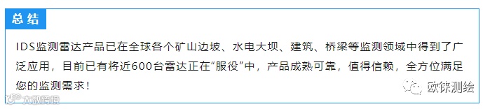 在本案例中IBIS-ArcSAR满足了大型露天矿日常监测需要,并且有着移动、快速、准确、实时的特点,并且在天气条件恶劣的时候,不受气象的影响,可以持续不间断的获取稳定、真实、可靠的监测数据。
