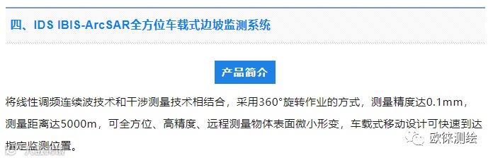 IDS IBIS-ArcSAR全方位车载式边坡监测系统的矿山监测解决方案作业高效,单台设备即可进行矿坑多个关键位置的实时监测,高精度位移监测可精准捕捉矿山边坡位移变化,实时预警,保障人员和财产安全。