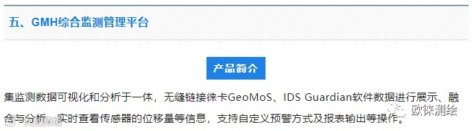 GMH综合监测管理平台能够整合所有监测传感器,并可无缝链接徕卡和IDS监测传感器数据,在单个控制面板中展示所有监测信息,简洁直观,操作易上手,功能全面,可扩展性强。