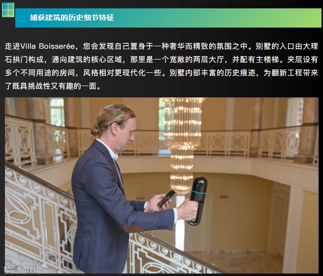 Villa Boisserée别墅由Sulpiz Boisserée家族始建于1901年,坐落于德国科隆。自建成以来,别墅经过多次翻新,最近一次是在2001年。这栋四层别墅拥有1435平方米的可用空间,占地面积达2000平方米,包含了丰富的历史细节特征,这些珍贵的特征亟待数字化扫描来详细记录。