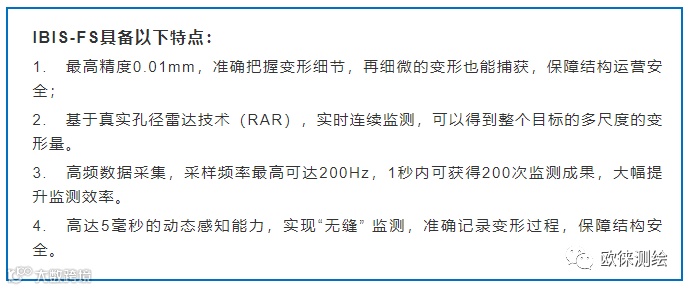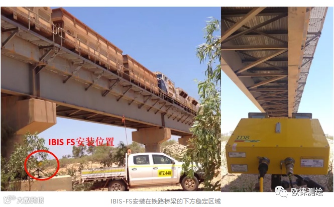 将IBIS-FS安装在桥梁的下方,使其监测范围能够覆盖桥梁的主跨区间。IBIS-FS远程建筑高精度监测系统是一个基于微波干涉测量的系统,将线性调频连续波技术和干涉测量技术相结合,通过发射200Hz的高频、连续雷达波并对回波进行干涉测量得到监测结果。