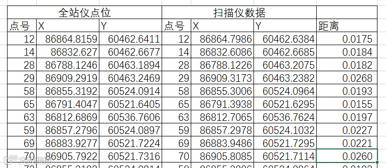 5)精度对比分析:对来自全站仪点位数据与P50扫描仪数据绘制的平面图做对比分析,结果在3cm之内,成果满足小区竣工平面图的规范要求。