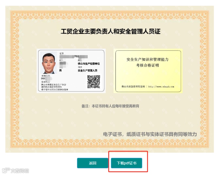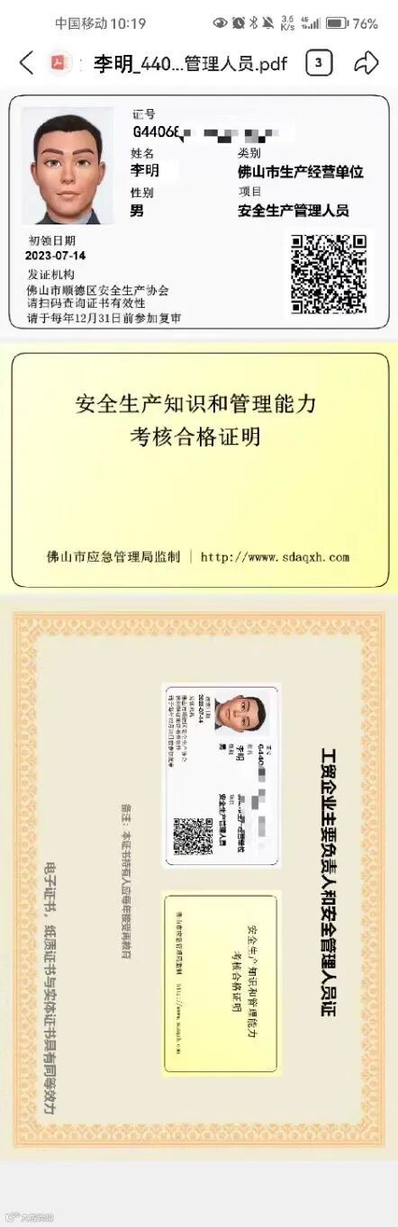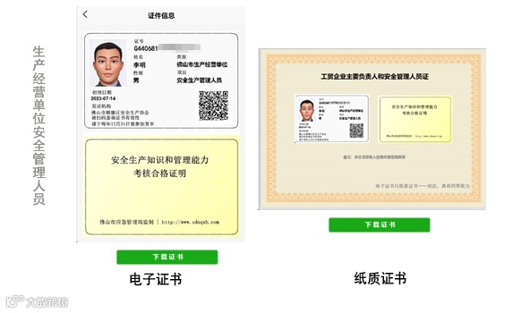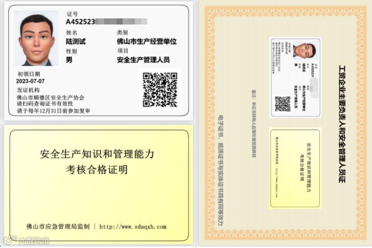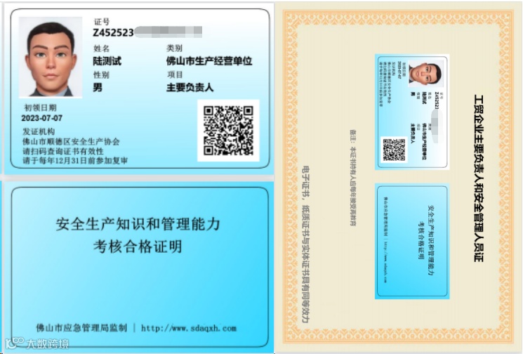 为适应机构改革需要,深入推进培训考核“放管服”,更好地方便佛山企业、群众自行打证辨证,8月1日起,佛山对非高危行业生产经营单位主要负责人与安全生产管理人员(一般工贸两类人员)安全生产知识和管理能力考核合格证式样进行了更新并启用电子证,请全市各企业、持证人留意。